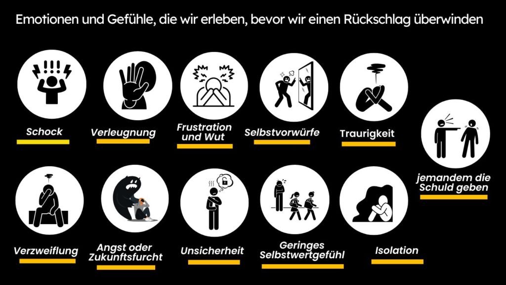 Emotionen und Gefühle, die wir erleben, bevor wir Rückschläge, Misserfolge, Hindernisse und Niederlagen überwinden