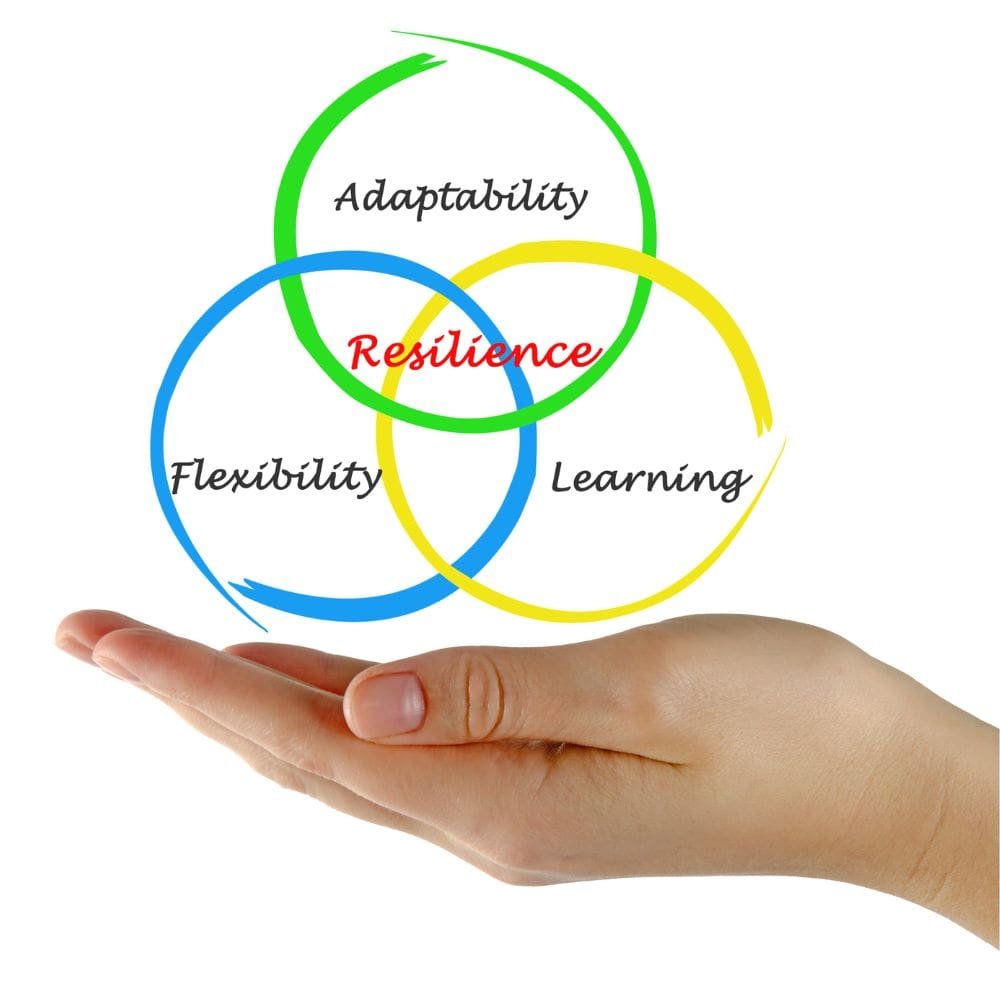 Dieses Bild verdeutlicht die Kernaspekte der Resilienz: Anpassungsfähigkeit, Flexibilität und Lernbereitschaft. Sie bilden die Basis, um auf Herausforderungen zu reagieren und an ihnen zu wachsen.
